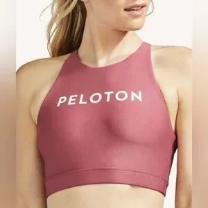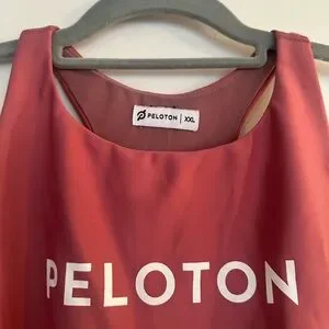 This Peloton women’s crop tank top in size XXL features a sleek, high-neck racerback silhouette that’s perfect for workouts or casual athleisure wear. The deep red-rose color pops with the bold white PELOTON logo across the front for a stylish, sporty look. The stretchy performance fabric offers comfort and breathability, while the wide underband provides light support.