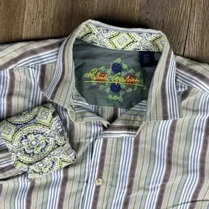Robert Graham Button Down Shirt Mens Large Flip Cuffs Green Floral Long Sleeve
