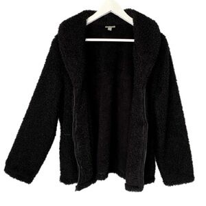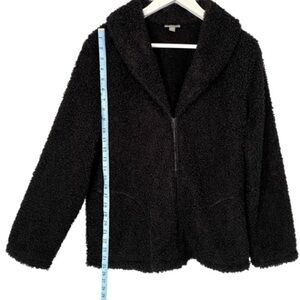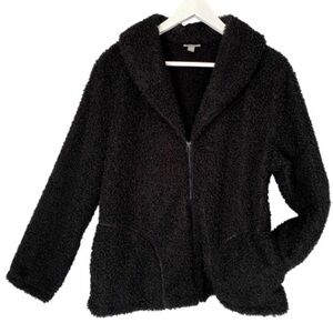 J. JILL Plush Teddy Fleece, Long Sleeve Zip Jacket, Black, Women's Size L