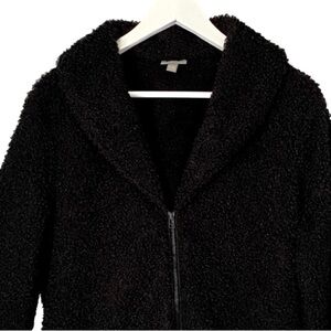 J. JILL Jacket Plush Teddy Fleece Zipper Black Long Sleeve Women's Size…
