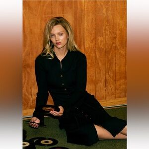 RIVIR Black Button-Down Midi Dress Ribbed Flute Sleeve S M L holiday