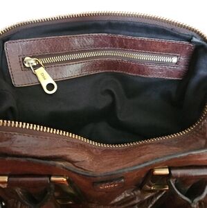 Chloé LARGE Vintage Ethel Brown Leather Handbag, Gold Accents, Crossbody Strap