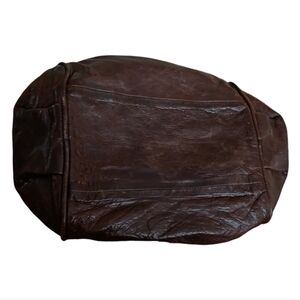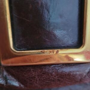 The leather is in beautiful condition aside from one callout--see details below and in photos). The exterior leather is well cared for. There is one slip pocket and one zippered pocket inside. Black interior lining, no stains or fading. Clean inside and out.
