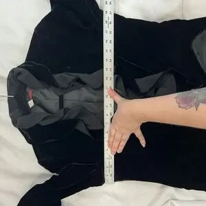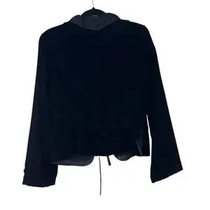 Anthropologie Black Velvet Crepe Ruffle Collar Tie Closure Blazer