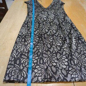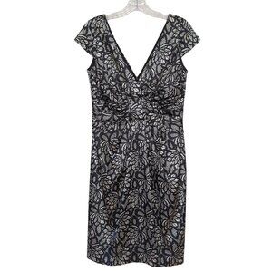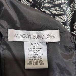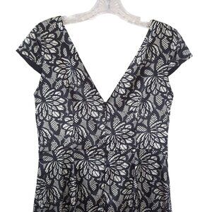 Maggy London size 8 black white floral Dress V-Front V-Back Empire waist