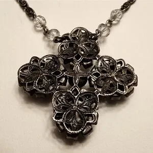 Vtg Liz Palacios Swarovski Crystal Cross Necklace 90s 1990s Rare