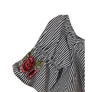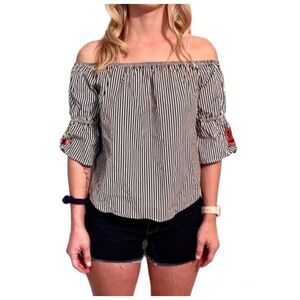 Womens Ambiance Apparel Striped Off Shoulder Floral Embroidered Top - Sz S