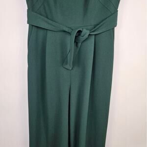 Calvin Klein Emerald Green Sleeveless Wide Leg Belted Jumpsuit Cropped Size 10