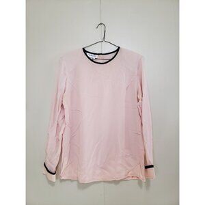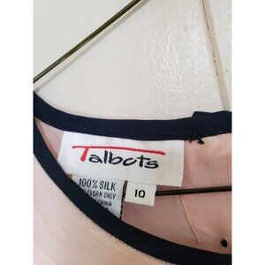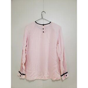 Vtg Talbots Womens 10 Blouse Lgt Pink Semi Sheer 100% Silk Back Button Career
