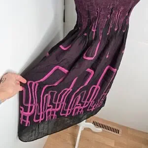 - the pattern looks like a Cityscape design and the stretchy top cascades down into a jagged pattern, very unique !