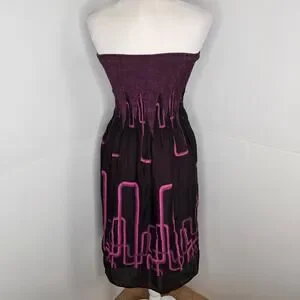 ๐ Lapis Anthropologie EUC Tube Dress Geometric Cityscape Strapless OS purple
