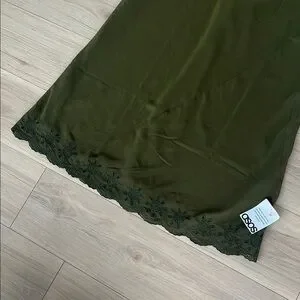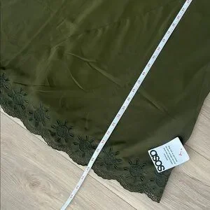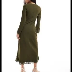 ASOS DESIGN embroidered cuff and hem maxi dress in khaki