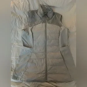 Stylish gray puffer vest. Perfect for layering. Offers warmth and comfort.
