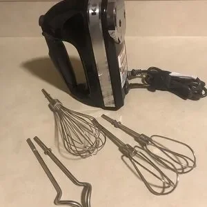 Black and Silver KitchenAid 9 Speed Hand Mixer with Attachments