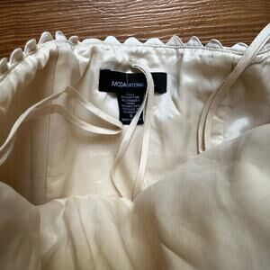 Moda International beige floral antique vase strapless midi dress SIZE 8