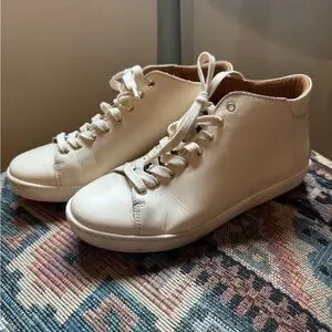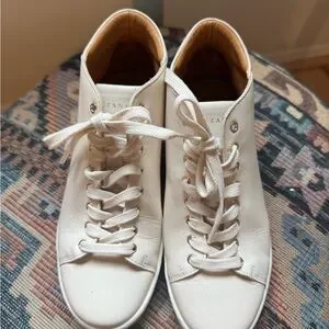 Elevate your casual look with Sezane's cream leather sneakers. Sleek and versatile design. Only worn a handful of times, very chic addition to any fall wardrobe.