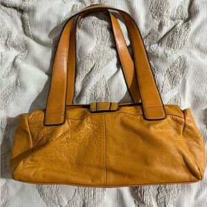 Vintage Y2K western Orange mustard leather shoulder bag baguette style purse
