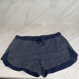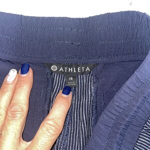 Athleta Striped Beachside Bali Linen Blue Striped Shorts Women's 16, EUC