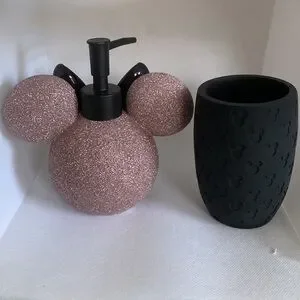 Disney Purple Glitter & Black Minnie Mouse Soap Dispenser & Toothbrush Holder