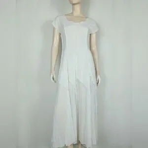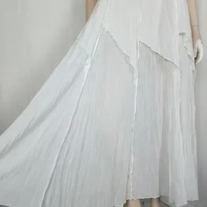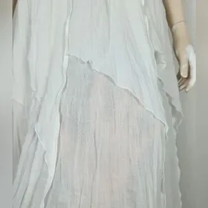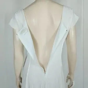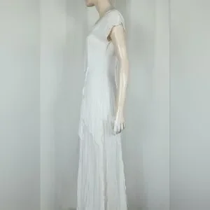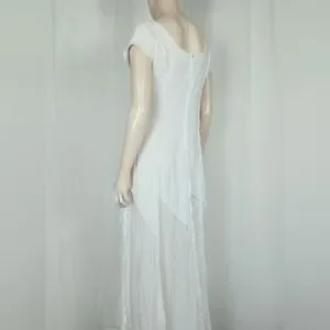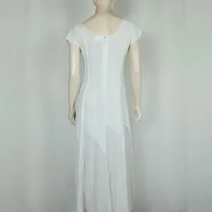 Lightweight & sheer, raised seams with layered cut past the hips, back zipper closure, unlined. Freshly laundered. No visible flaws.