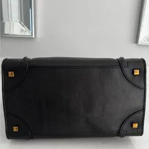 Quiet luxury satchel in black calf skin leather. Sleek design with top handles. Ideal for everyday elegance, travel, or business.