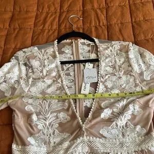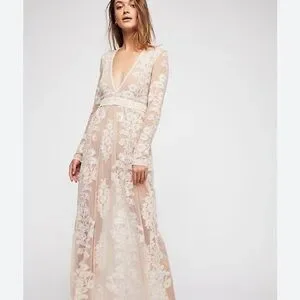 For Love and Lemons dress- Rare- never worn. Beautiful sheer lace Maxi dress with attached bodysuit. Would make a lovely bohemian wedding dress or be perfect for free spirited bump photos.