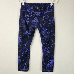 Lululemon Wunder Under Crop Leggings Blue Black Abstract Print Size 6