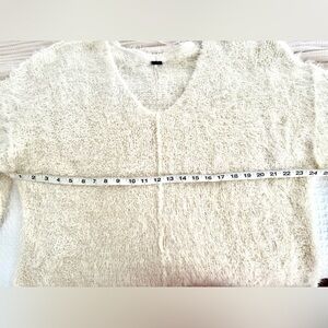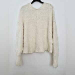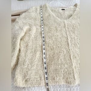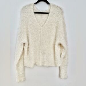 Free People V- Neck Fuzzy Sweater Ivory Size Medium