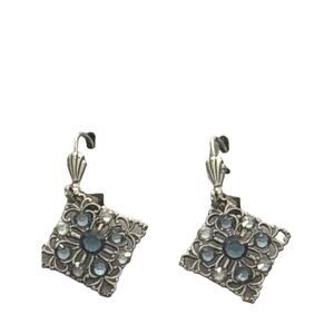 Anne Koplik Blue Crystal Drop Dangle Earrings Boho Retro Art Deco