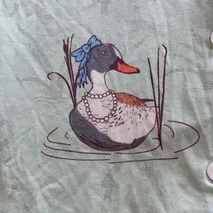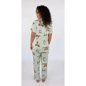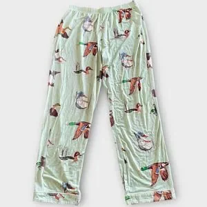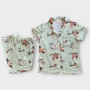 In My Sundays Fancy Fowl Pajama Set Women's Small Duck Sleepwear Green Button Up