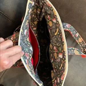 Stylish tote bag featuring 'Mouth Breather' design. Red and black accents add a bold touch. Can use over the arm or as a backpack. Is a one of a kind special made.
