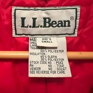Vintage LL Bean kids ski/snow/snowmobile suit. Very warm Thinsulate lining. Got us through a few winters in Maine. No stains, holes, and the cuffs are in great condition. From a smoke-free, pet-friendly home. Hood can be rolled and stored in collar.