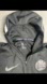 Dark gray Nike hoodie with NBA emblem. Features full zip and hood. Side pockets.