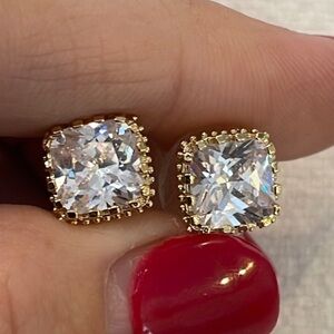 💐5/25 large sparkly stud earrings gold tone edge detail elegant nice quality