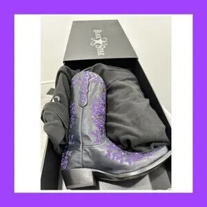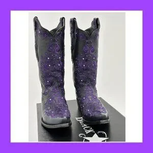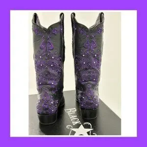 Black Star SWEETGRASS Women's Cowboy Boots in Black w Purple - Size 8.5
