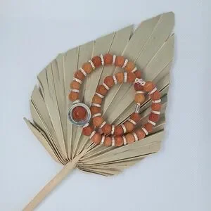 Orange Sunstone Praywr/meditation Beads with Silver Accents