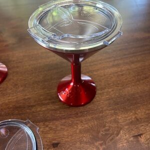 Enjoy your favorite drinks in style with the Red Martini Glass. Featuring a sleek design and a secure lid, it's perfect for any occasion.