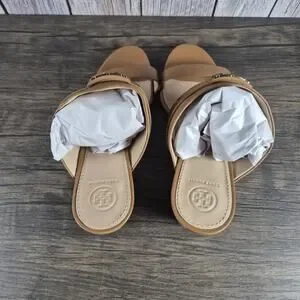 Tory Burch GIGI 65mm Wedge Royal Tan Leather Sandals Open Toe Women's Sz 11 M