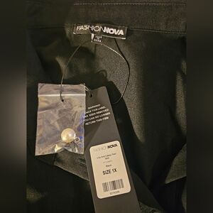 Fashion Nova Chic Black Button Down Shirt with Pearl Details