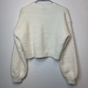 Vici Lost Without You Fuzzy Cropped Sweater With Balloon Sleeves Size X-Small