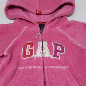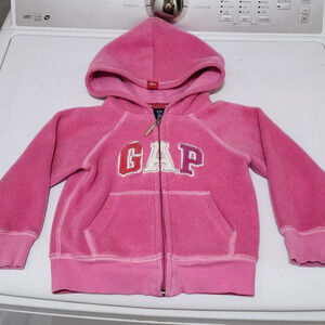 Baby GAP Jacket 2T Toddler 2 Years Pink Hooded Full Zip Fleece Pockets - Nice!