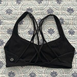Size 4 Lululemon black strappy sports bra in style Free to Be Zen