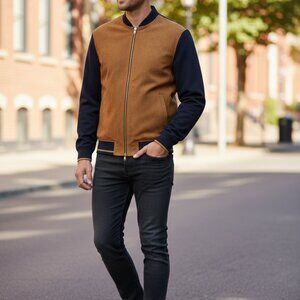 Zara Faux Suede Men’s Jacket Navy & Tan size small PTP 20”