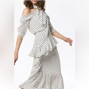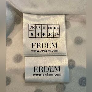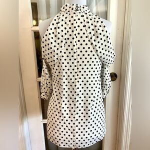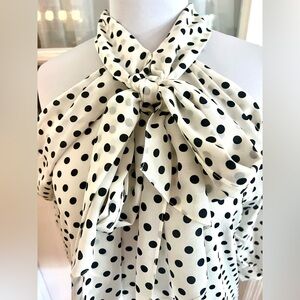 This is an EUC SZ 4 Stunning Silk Erdem Polka Dot Tie Blouse. Soft and silky with lots of draping. Cold shoulder detail with a tie at the neck. Back button neck closure and zipper. Retails for $1375