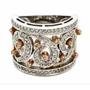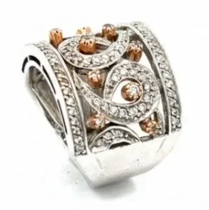 14K Sonia Bitton White & Rose Gold Diamond Swirl Wedding Ring