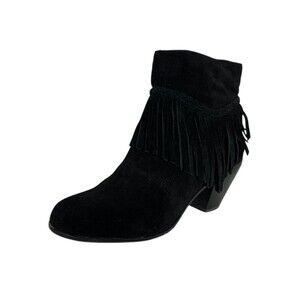 Gianni Bini Fringed Black Suede Ankle Booties Size 6.5 Western Boho Cowgirl
