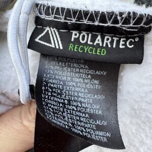The North Face Denali Jacket is a stylish and warm outerwear option for women in size large. Made with white fleece Polartec material, this short jacket features a full zip closure and a solid pattern with embroidered accents. It is suitable for casual occasions and has a preppy outdoor theme, making it a versatile piece for the winter, fall, and spring seasons. This basic jacket also includes a collared neckline and bodywarmer design, perfect for adding a touch of style to your wardrobe.