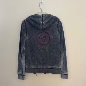 Roxy Gray Faded Zip-Up Hoodie with Sherpa Lining Women SizeM