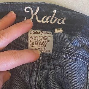 KABA Skinny Dark Indigo Preowned Jeans Stretchy. Waist measures approx 28” wide. Inseam measures approx 30” lonf. Rise measures approx 8”.