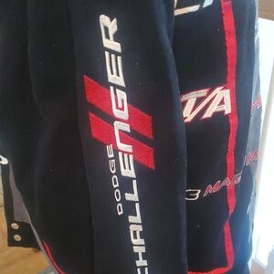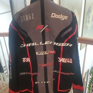 Stylish Dodge Motorsports jacket featuring bold red and black accents. Perfect for car enthusiasts.